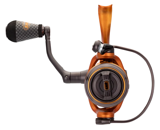 The Lew’s Mach Crush Spinning Reels are series of freshwater spinning reels with a 6.2:1 gear ratio. Like its baitcasting cousin, the Mach Crush spinning reel has performance features packed throughout, including: a premium 11-bearing system with 10 ball bearings and a Zero Reverse one-way clutch bearing, a smooth and powerful sealed carbon fiber drag system, a strong aluminum body and sideplate, and a lightweight high strength Carbon C40 Skeletal Speed Rotor with an aluminum bail wire.