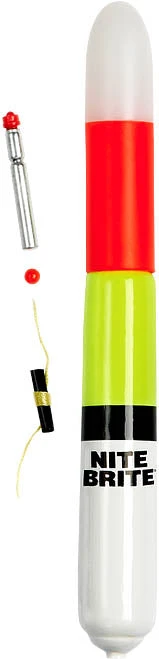 The Little Joe Nite Brite Pole Float is for anglers who like to fish for trophy fish at night. It glows like a beacon and is weighted for extreme casting distance. The Nite Brite Pole Float is a premium balsa wood float with E.L. bright light technology, so it glows 20-times brighter and twice as long as most conventional lighted bobbers.