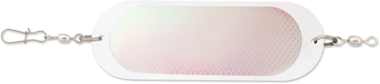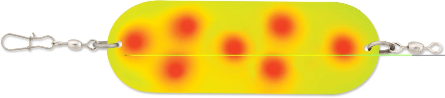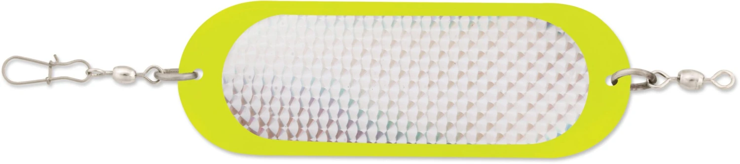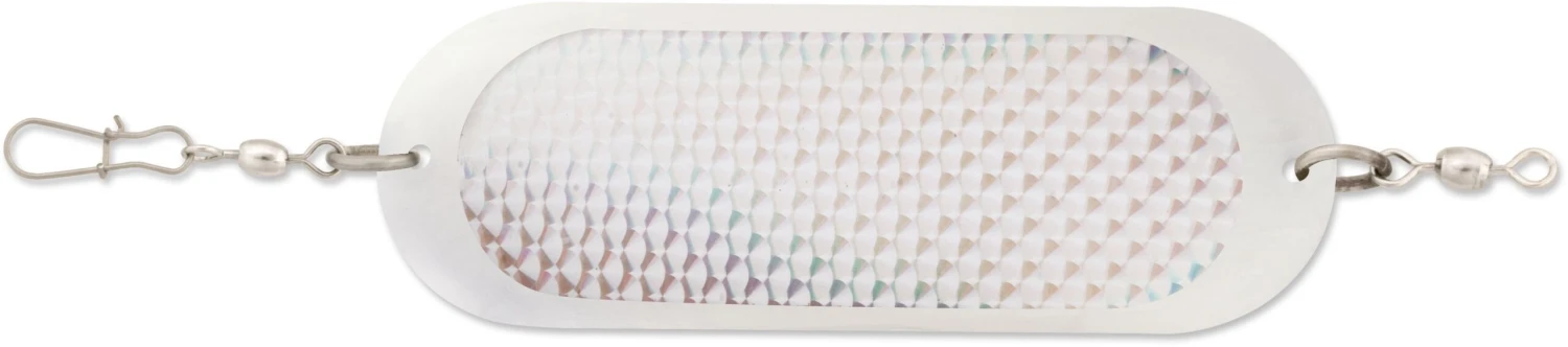 The Luhr-Jensen Dodger is a trolling dodger with premium plating & polishing for maximum flash. Slightly narrower for its similar length to the Herring Dodger, the Jensen Dodger will tolerate faster speeds preferred by anglers in the Great Lakes. It swims with a sharp side-to-side snap that livens the action of spoons, flies and lures. The selection of available colors includes those proven over decades to be the top performing finishes for drawing the attention of salmon.