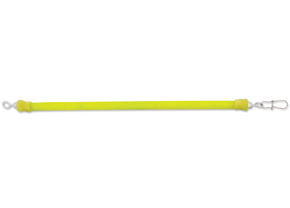 The Luhr-Jensen Medium Flex Salmon Bungee is a 12 inch bungee cord for salmon trolling presentations. Whether you’re using downriggers, trolling divers, or sinkers There is commonly a lot of tension in trolled salmon gear. The Salmon Bungee allows these large fish to naturally mouth trolled baits or lures until they turn, come tight against the fully stretched bungee, and effectively set the hook on themselves. The Salmon Bungee is 12 inches when relaxed, and extends more than double its length to a total of 32 inches at full stretch. Available in Black, Chartreuse, Fire, and Kelly Green colors.