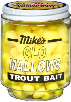 - Mike’s Glo Mallows are a scented marshmallow trout bait.