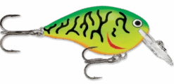 The Rapala DT4 (Dives-To) series of crankbaits dives fast to a preset 4 foot depth and stay in the “strike zone” longer than any than other crankbait on the market. Made from the top seven percent of balsa wood, this consistently perfect wood combined with carefully placed internal weights, tapered fuselage and thin tail design creates the ultimate crankbait action, found only in the DT family. Ultra-thin polycarbonate lip digs the bait down quickly to desired depth. Swimming with a side-to-side action only balsa crankbaits can achieve, the DT cranks deep, yet pulls with ease.