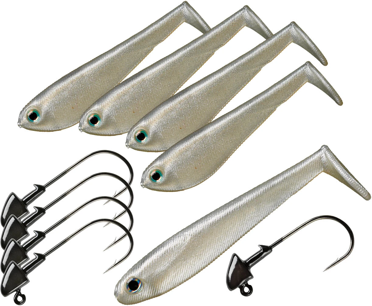 Purchasing a YUMbrella or other multi-lure rig is a two-part (and sometimes three-part) process, and the decision of what to swim with your YUMbrella can be confusing. YUM makes it quick and easy with the YUMbrella Accessory Kit. The Accessory Kit contains everything you need to rig our a YUMbrella or other multi-lure rig, with top quality effective swimbaits and jigheads designed specifically for these rigs by professional anglers who refined the technique.